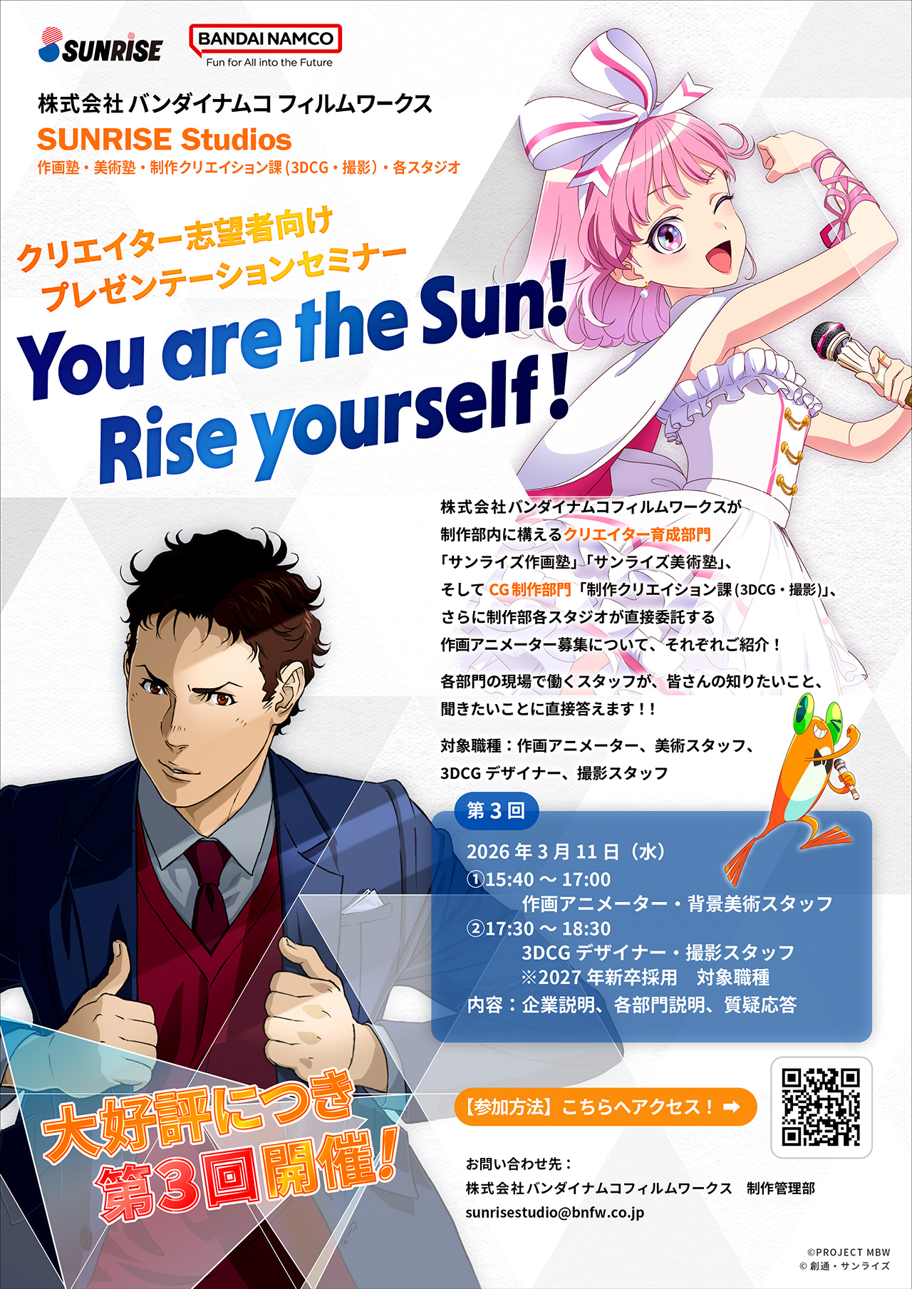 SUNRISE Studios クリエイター志望者向け会社紹介Webセミナー 3月11日(水)開催!