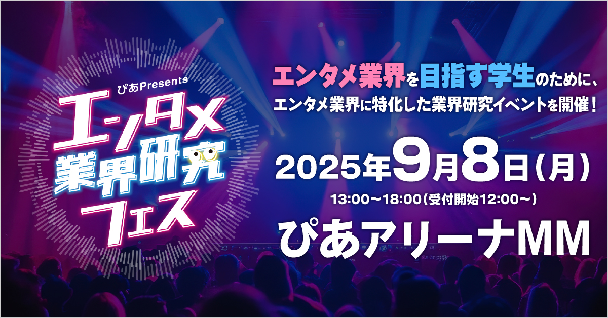 9月8日(月)に横浜・ぴあアリーナMMにて開催されます『ぴあPresents エンタメ業界研究フェス』への出展が決定いたしました!